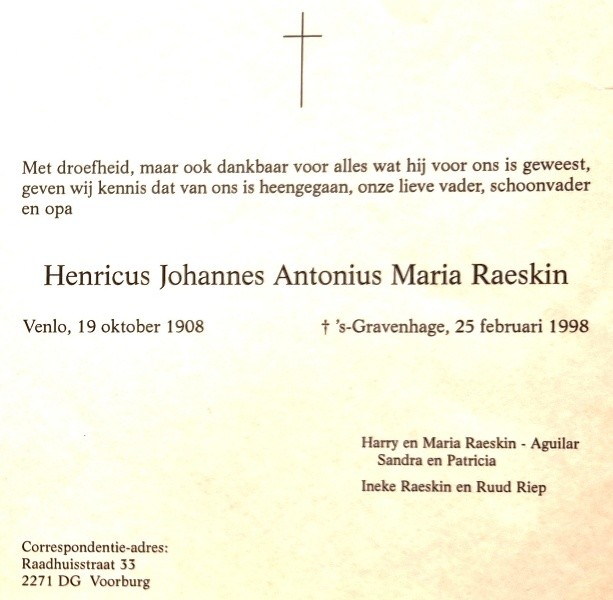 Op 14 oktober 1989 overleed hij in zijn geboortedorp Tegelen, bijna 83 jaar oud.