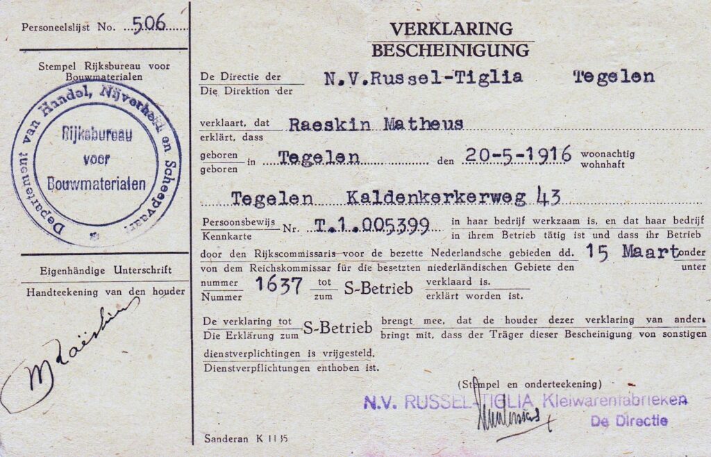 In dit artikel geven we veel persoonlijke verhalen over Tegelenaren en hun inzet in Duitsland voor de Arbeitseinsatz.