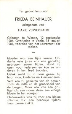 Zijn vrouw Frieda overleed in 1981 in Maria Auxiliatrix te Venlo, na negen jaar verpleegd te zijn geweest. Harie bezocht haar dagelijks.