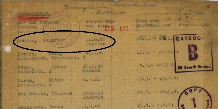 Inschrijfformulier Bethesda ziekenhuis, Mönchen Gladbach. Zijn voornaam is hier Heinrich. Bron: Arolsen Archives