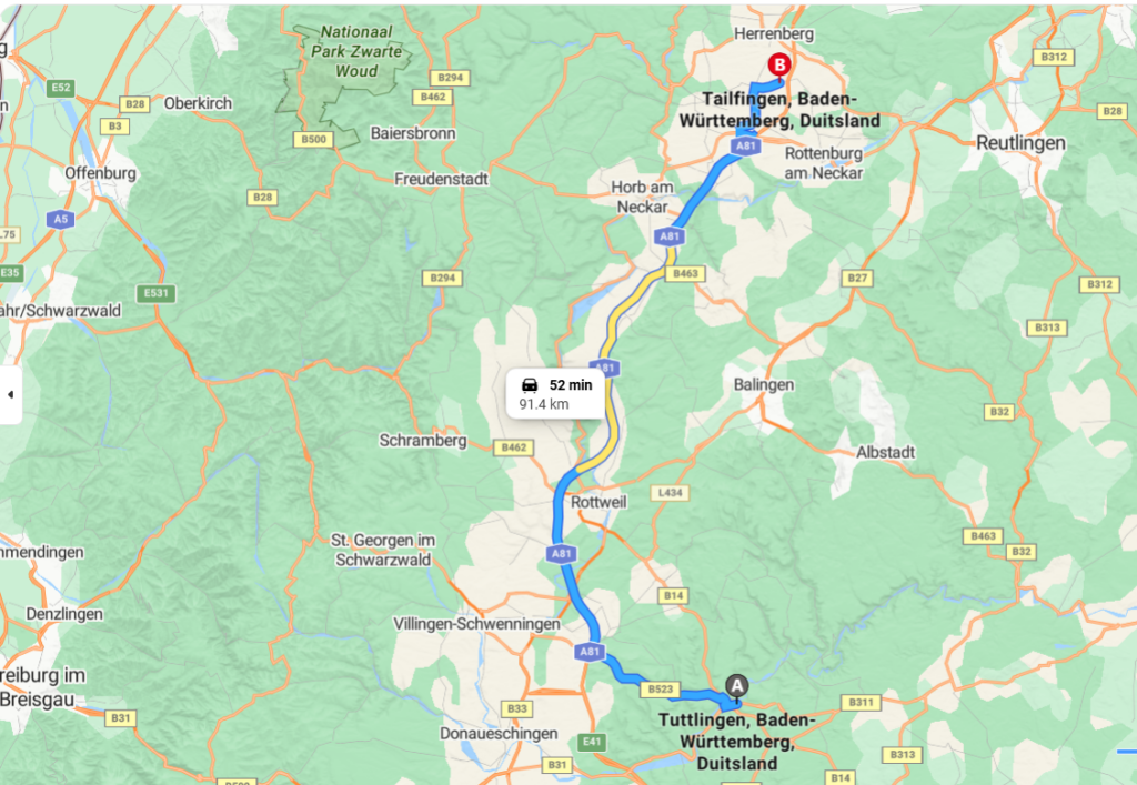 Taiflingen en Tuttlingen liggen 91 km uit elkaar