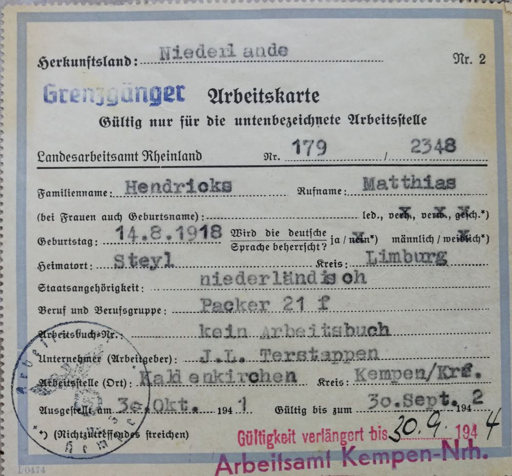 “Arbeitskarte” van Jeu Hendriks. Bron: Arolsen Archives