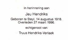In maart 1996 overlijdt Jeu Hendriks op 77-jarige leeftijd.