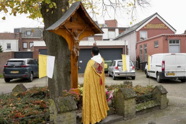 Vanochtend is, na de kerkdienst van 10.30 uur, het kruis aan de Oudemarktstraat door pastoor Anu Antony gezegend. Roy Denessen, erfgoeddeskundige van de Gemeente Venlo richtte eerst een woordje tot de aanwezigen. Het kruis is afgelopen maanden gerenoveerd en werd exact 86 jaar geleden ook gezegend. Door de gemeente Venlo is in juli het kruis…