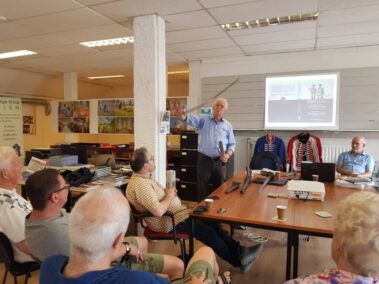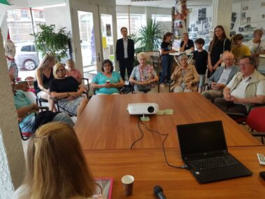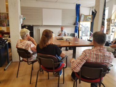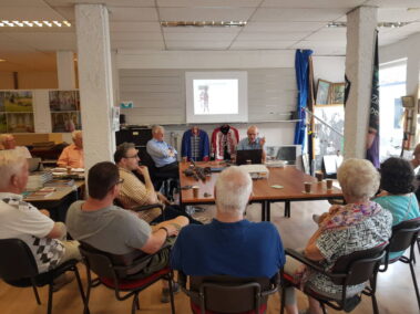 Daarna wist Gertie Schouwenberg ons te boeien met haar verhalen over de roze zusters. Door vragen vanuit het publiek, voorlezen en vertellen werden we opnieuw meegenomen in een wereld die voor velen van ons onbekend en gesloten zal blijven. De prachtige foto’s van Adriaan de Roode die het verhaal ondersteunden zijn overigens nog steeds te bewonderen bij “de KOSO”. Marcel Dings en Frank Poeth namen ons vervolgens mee op een reis door Duitsland aan de hand van feiten en fabels over het leven van Von Glasenapp. Met humor en kennis van zaken kregen de aanwezigen een kleine geschiedenisles.