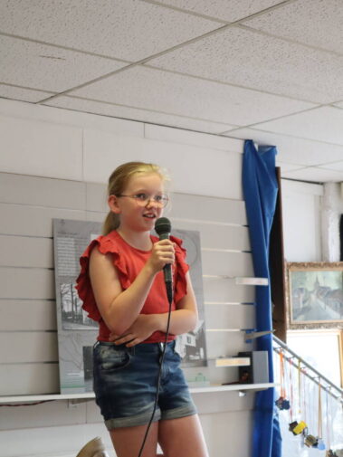 Op zaterdag 25 juni was het “open dag” bij de Heemkunde in het Kosopand. De dag werd afgetrapt door Jip Hendriks, Mischa van Enkevort en Minou van Hees. Deze winnaars van de declamatiewedstrijd van Veldeke droegen op een prachtige manier hun tegels versjes voor en lieten zien en horen hoe mooi “ôs Tegels” is.