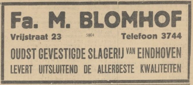 Slagerij Blomhof (ook geschreven met dubbel f). Bron: Delpher