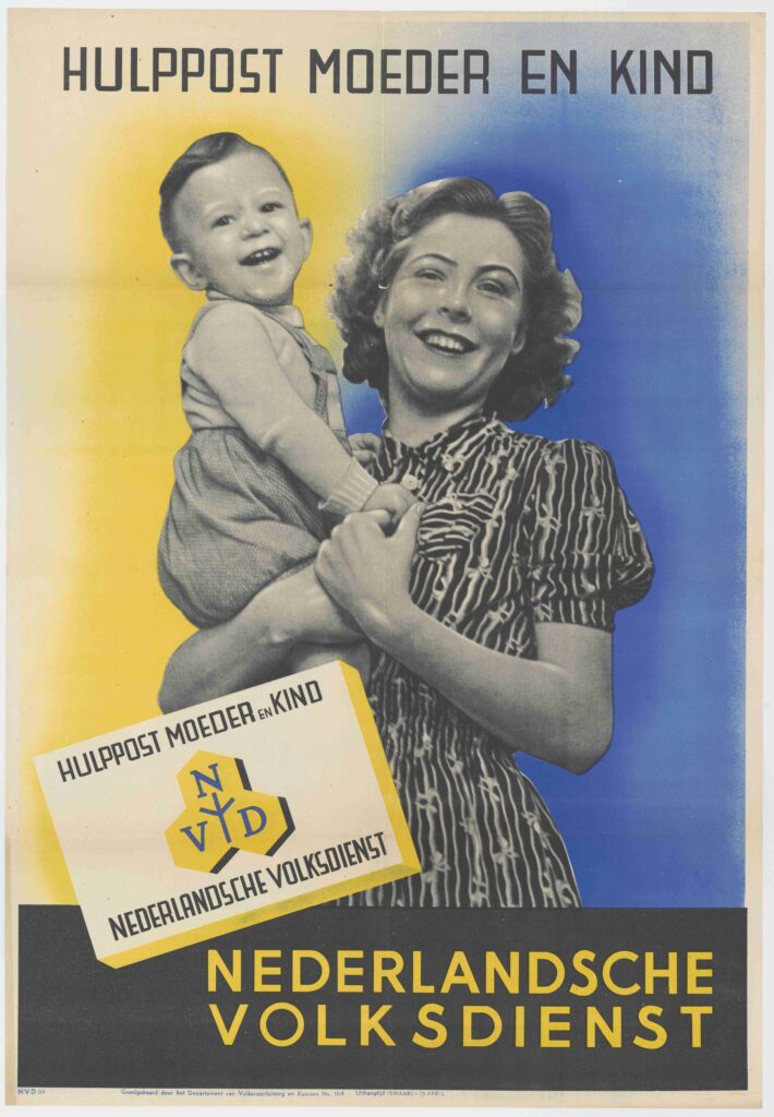 Poster hulppost moeder en kind, onderdeel van de Nederlandse Volksdienst. Bron: Wikipedia