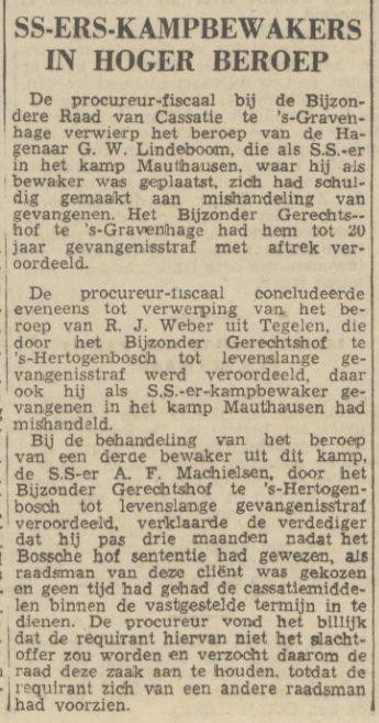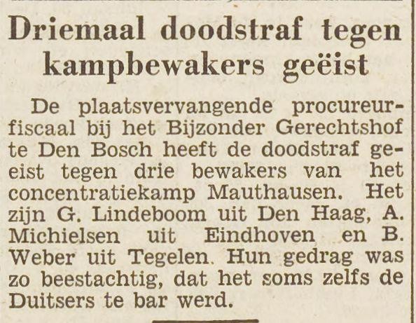 Volgens een krantenartikel in Het Vrije Volk van november 1948 bevonden Weber en zijn metgezellen Machielsen en Lindenboom, die elkaar kenden van de opleiding in Sennheim, zich al 1943 in Mauthausen.