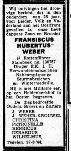 Franciscus Hubertus Weber (06-08-1918 – 1944)