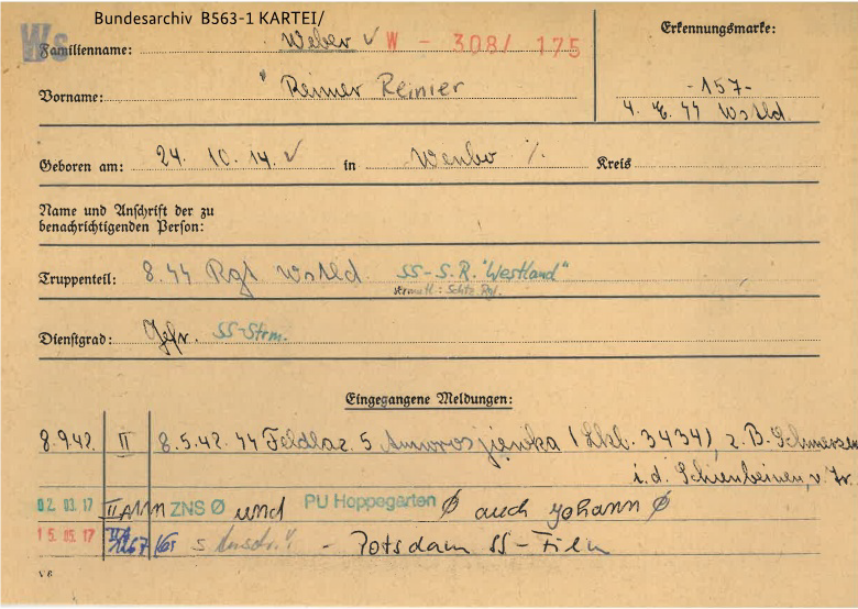 Inschrijfkaart Reinier Weber Bundesarchiv, Berlijn.